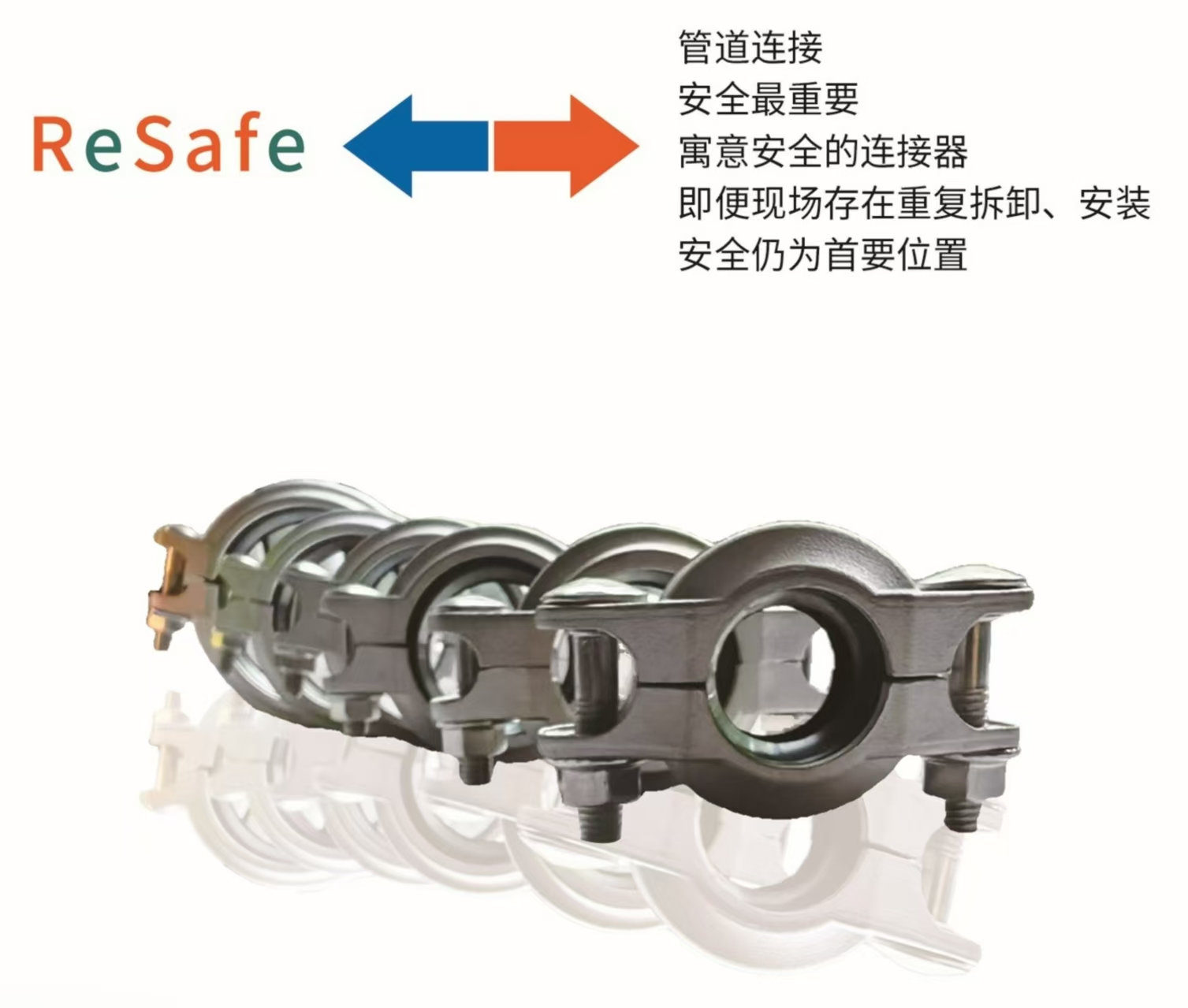 ReSafe产品包括:1”~8”(DN20~DN200)口径的不锈钢&铸铁连接件,使用压力根据不同产品从150Psi/1.0MPa至最高可达2300Psi/16MPa,满足各工矿使用要求。